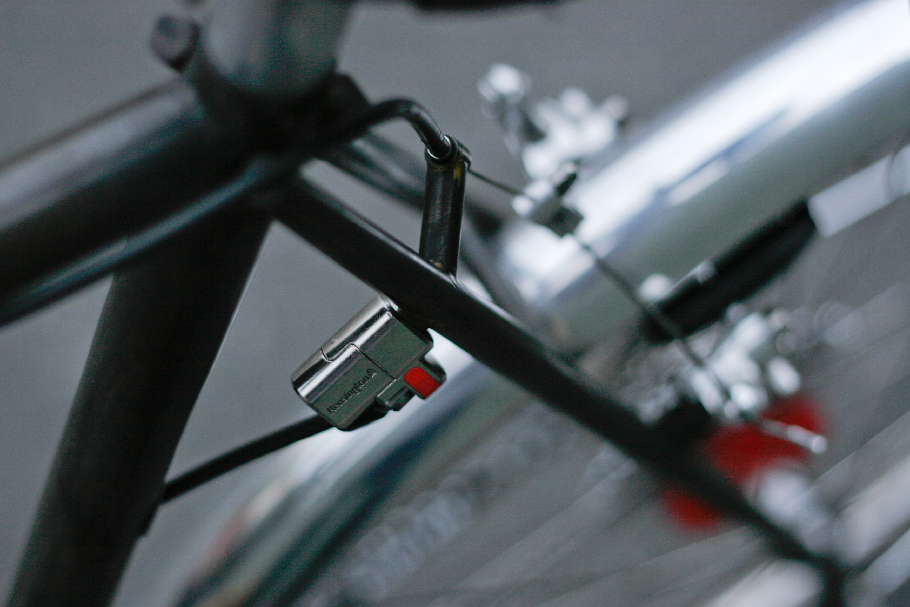 A locking system was another requirement. My solution was a cable lock that extended out of the seat tube and locked back onto the frame. When not in use it could be kept in the position you see it in, no rattles, just there when you need it.